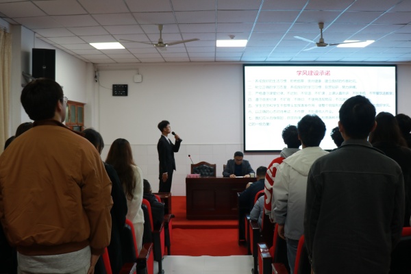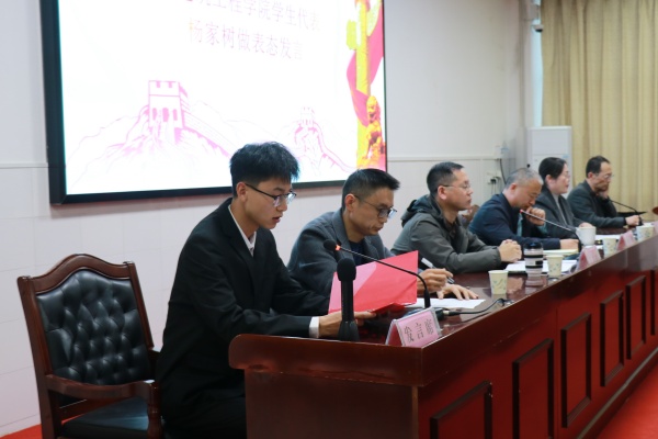 学生代表张家树作表态发言并带领全体同学庄严宣誓,承诺端正学习态度,自觉维护良好学习生活环境,共同建设文明校园。