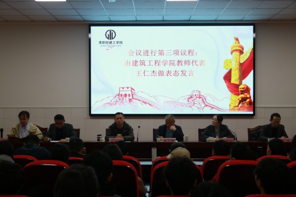 为不断提升学院各专业教学质量和人才培养质量,努力营造优良的育人环境,强化学生管理,提升办学品位,促进优良教风学风形成,11月14日下午,建筑工程学院在3101召开了教风学风建设活动启动仪式。参加会议的有建筑工程学院党总支书记杨子峰,建筑工程学院院长姚艳红,副院长王志皓,办公室主任林果,全体任课教师,学生代表。会议由建筑工程学院教师宋志广主持。