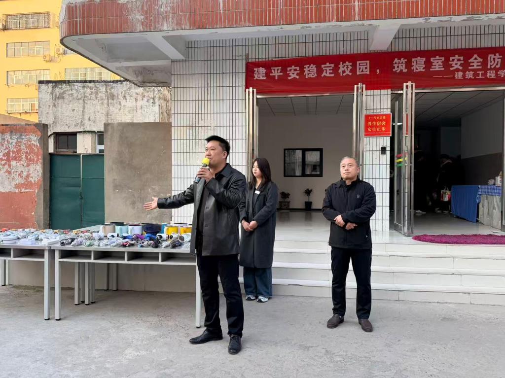 为深入开展2025-2026学年秋季学风建设活动,11月20日,建筑工程学院在11号宿舍楼举办宿舍违规物品展示教育暨宿舍安全专题会议。参加会议的有建筑工程学院党总支书记杨子峰、宿管科负责人禹建颖、建筑工程学院教学负责人王志皓、建筑工程学院教师宋志广,全体辅导员及学院全体学生共同参加本次会议。