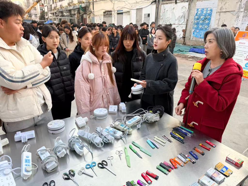 禹建颖结合多年一线工作经验,通过展示各类违禁物品,深入剖析了宿舍内使用违规电器的严重危害。他运用真实案例,详细讲解了违规用电可能引发的火灾事故,并现场演示了违禁品的识别方法,使安全意识深入人心。