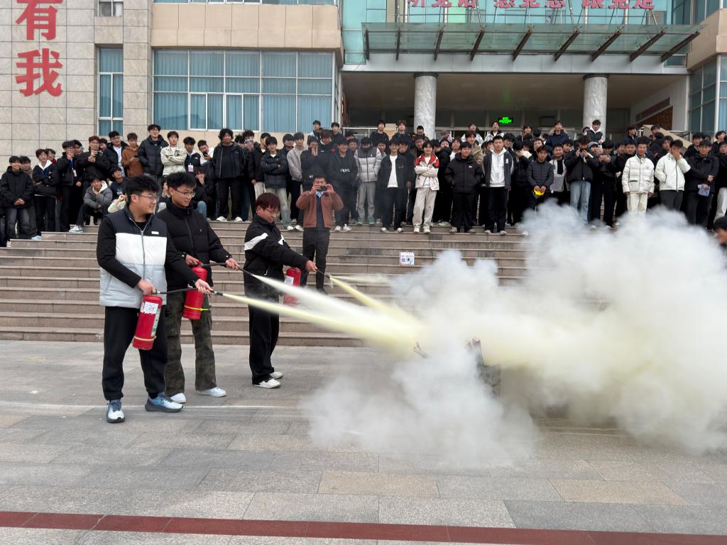 最后,在学校保卫部门的配合下,学生在现场手持灭火器进行了灭火演练。