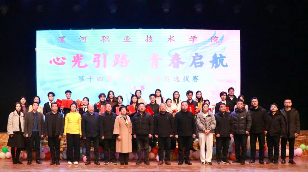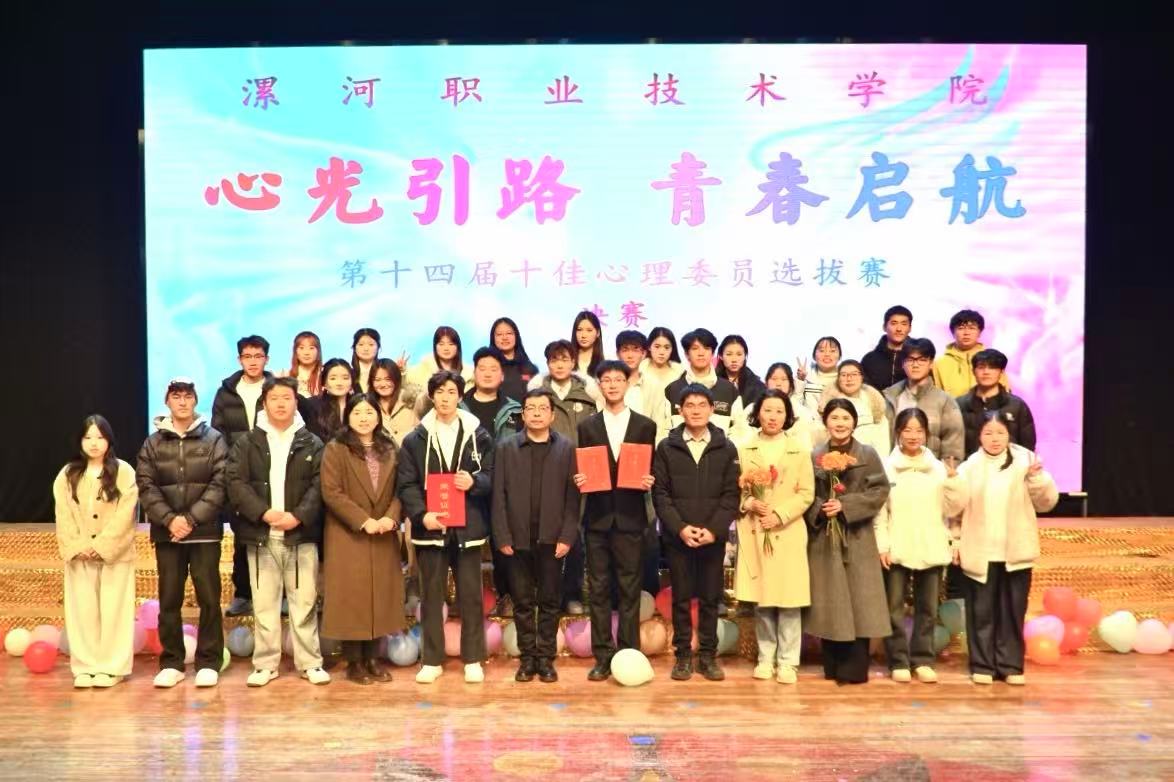 12月5日晚上,漯河职业技术学院第十四届“十佳心理委员”决赛在学校大礼堂举行。校党委委员、副校长程传蕊、学生处处长李晓伟、各二级学院党总支书记、副书记、心理健康工作负责人、学生代表共同出席了本次活动。