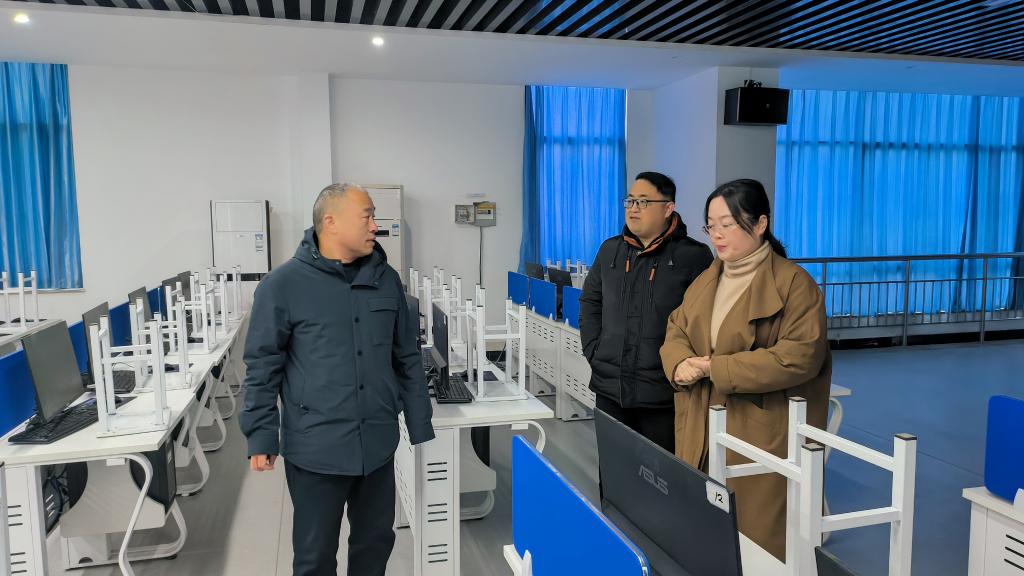 检查小组深入每一间实验室,从设备运行状态、电气线路规范铺设、消防通道畅通性到防潮防冻措施等关键环节进行了逐一排查。针对雨雪天气易导致的电路老化、设备受潮等问题,小组现场记录隐患点,并立即协调维修人员跟进处理,确保了假期中实训场所安全。